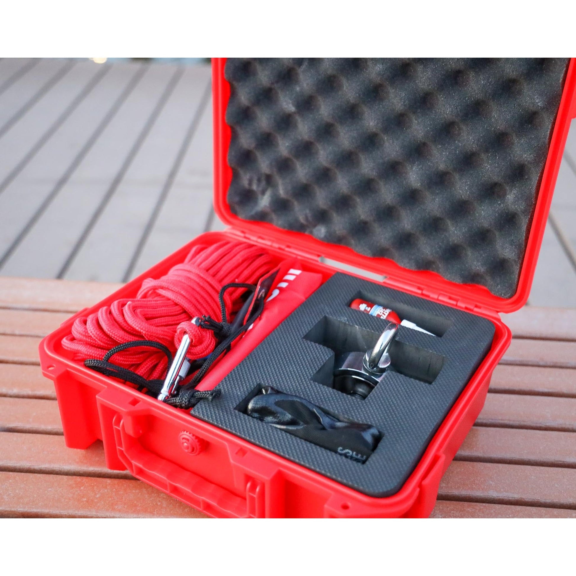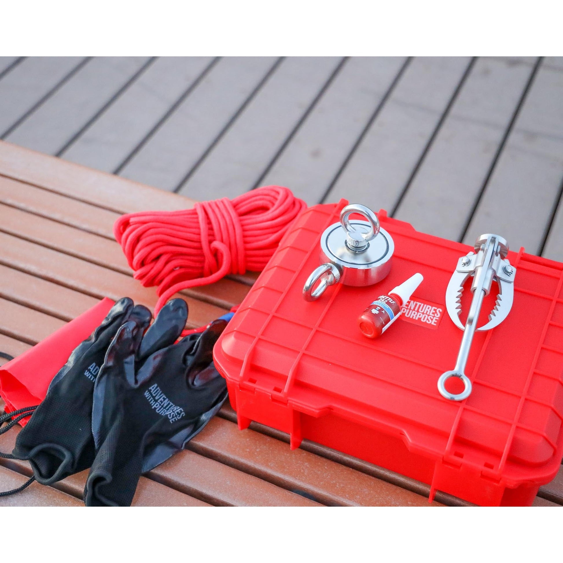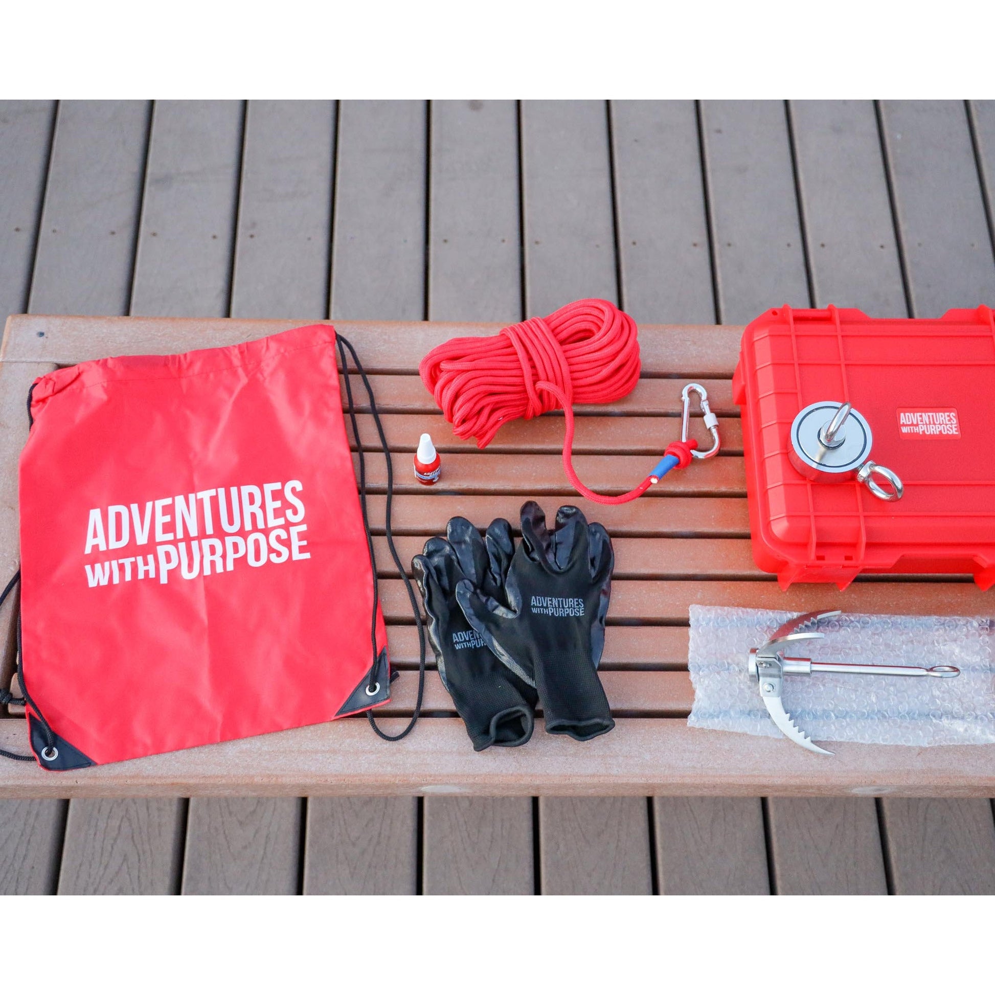 You'll fall in love with this fishing magnet bundle kit with a waterproof case, gloves, thread locker, drawstring bag, rope, and foldable grappling hook.