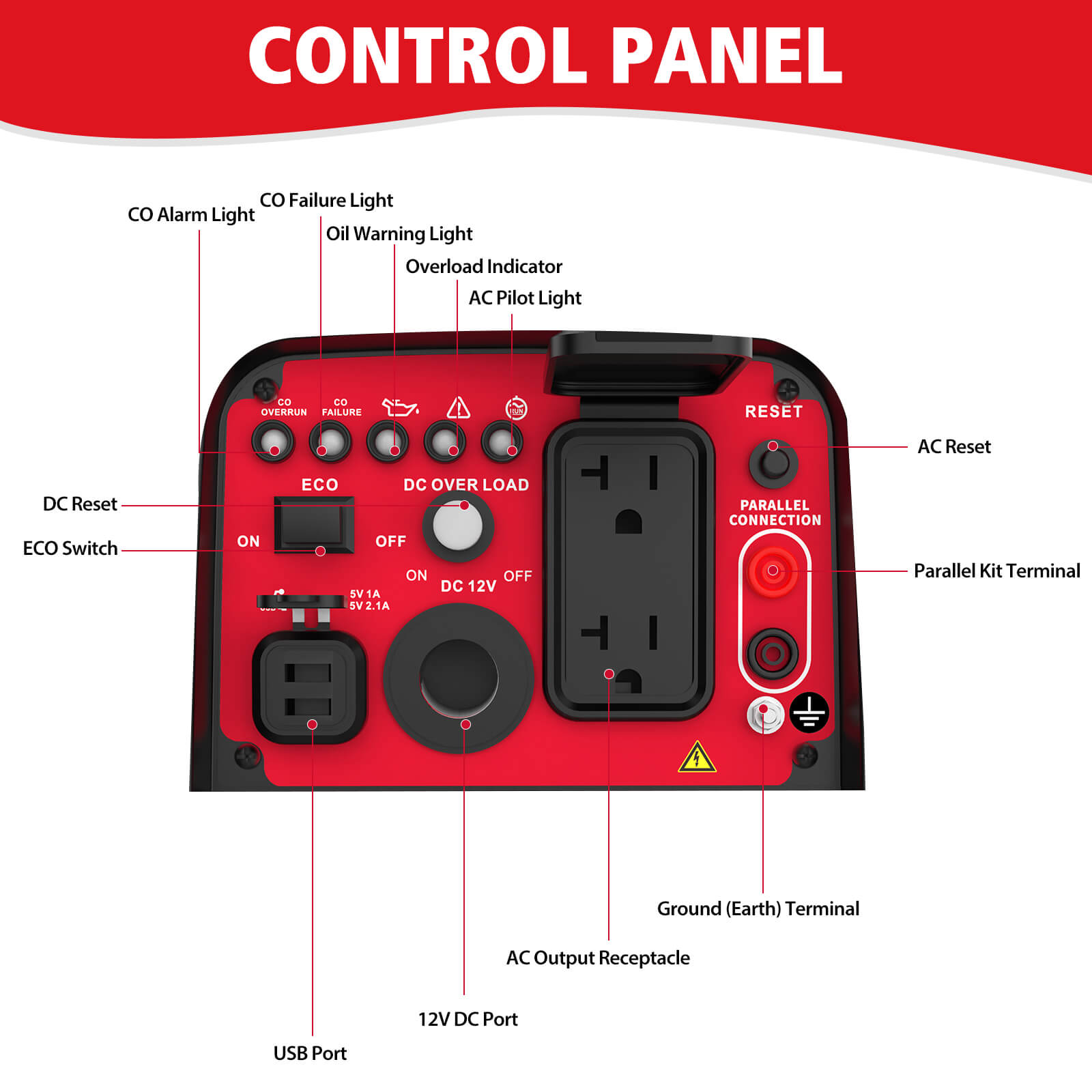- Power: 2500 starting watts, 1900 running watts with fuel-efficient performance.