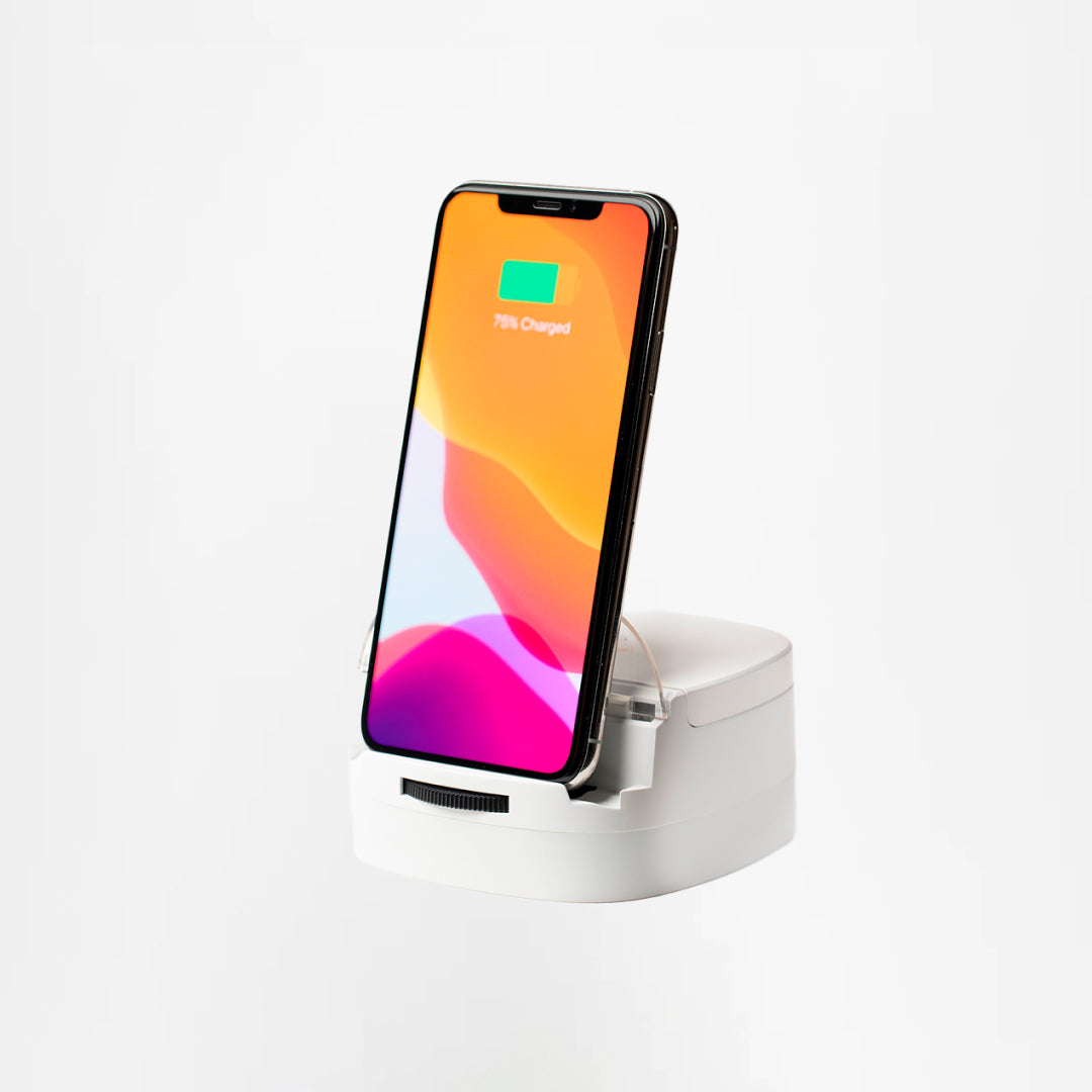 The LumiCharge UD is a versatile and compact charging dock designed to simultaneously charge up to three devices. It features an adjustable stand that accommodates various phone sizes and orientations, ensuring optimal charging positions. The dock supports Qi-certified fast wireless charging, providing efficient power delivery to your devices. Its sleek design makes it a perfect addition to any desk or bedside table, keeping your devices organized and ready to use.