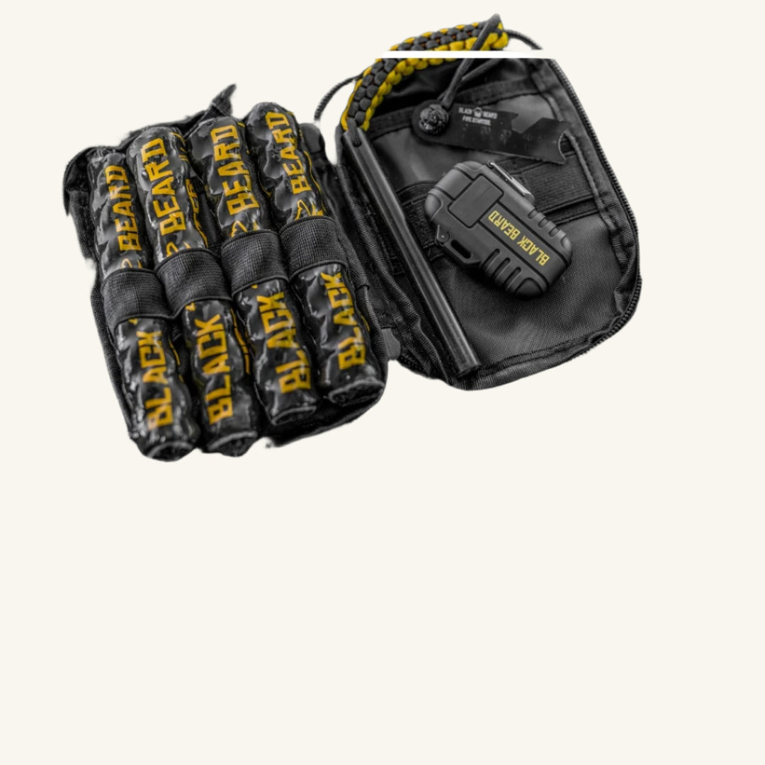 - 4 Black Beard Fire Starters (Over 16-hour burn time): Ditch the damp matches and unreliable lighters! These windproof and waterproof fire ropes ignite instantly, even in the harshest conditions. Each rope burns for a whopping 4 hours, keeping your campfire roaring through the night.